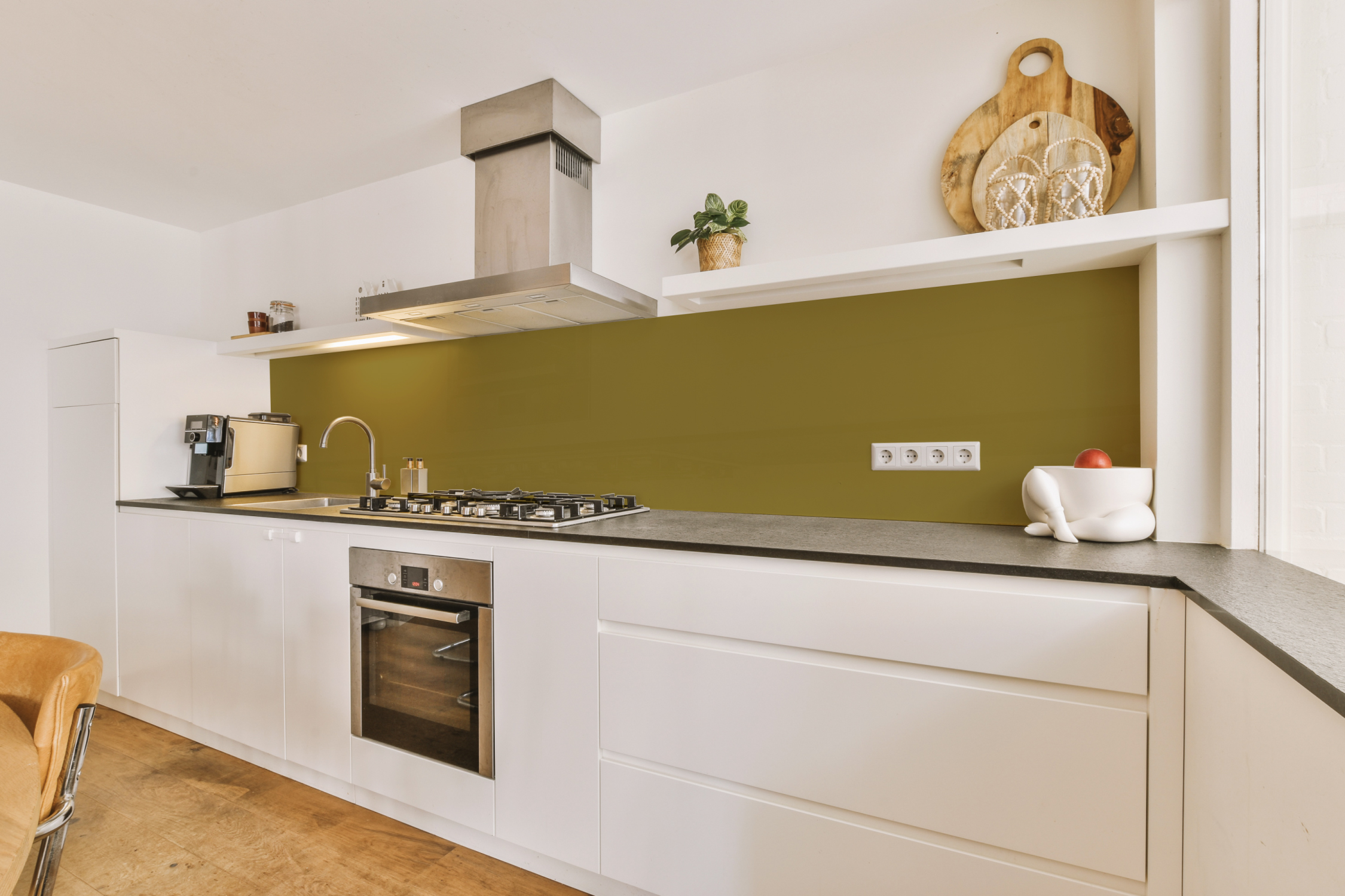 Preview: Küchenrückwand Folie Einfarbig Olivgelb
