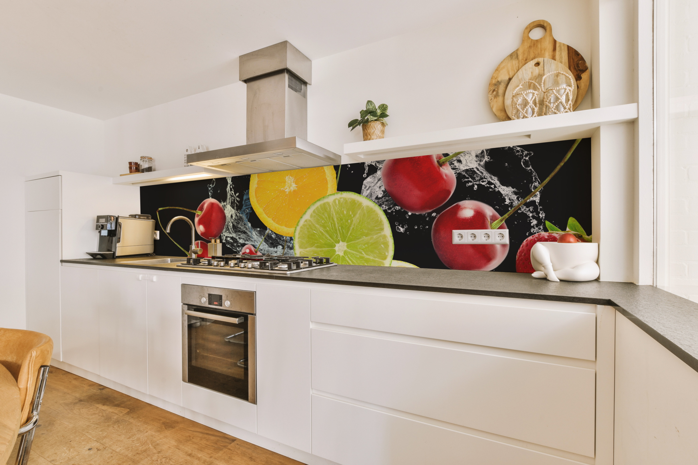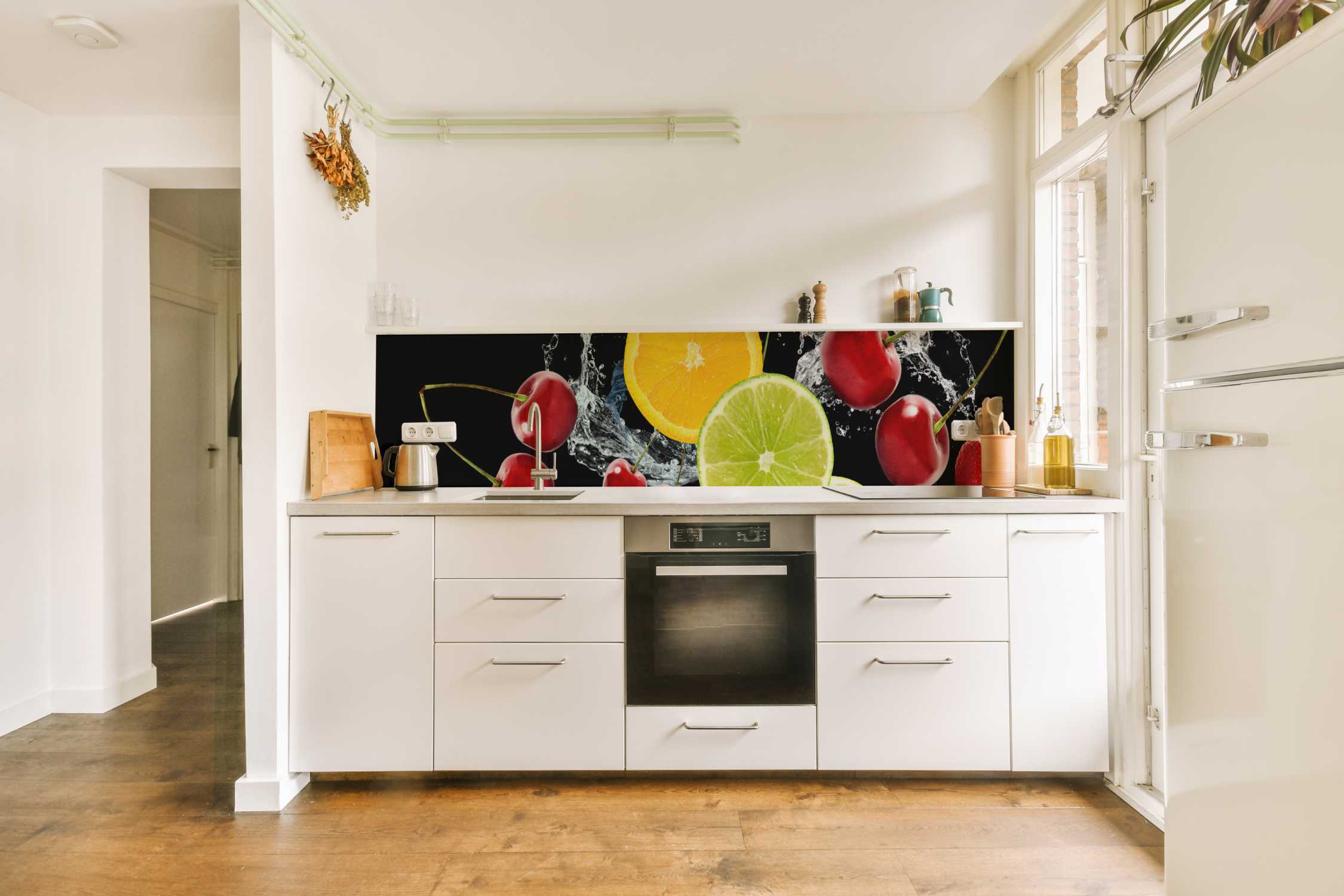 Mit unseren angebotenen Küchenrückwand Folien können Sie Ihren alten Fliesenspiegel im Handumdrehen, ohne viel Aufwand überkleben und somit eine ganz neue Optik in der Küche erschaffen. Die optische Aufwertung und der dekorative Einsatz sind nicht die einzigen Vorteile, unsere Spritzschutz Folien schützen zusätzlich Ihren Fliesenspiegel und -fugen vor hartnäckige Flecken hinter dem Herd. Schmutzbildungen werden somit verhindert und Sie ersparen sich die lästige Fugenreinigung.